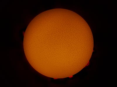 disk from green channel, prominences from red channel, and averaged