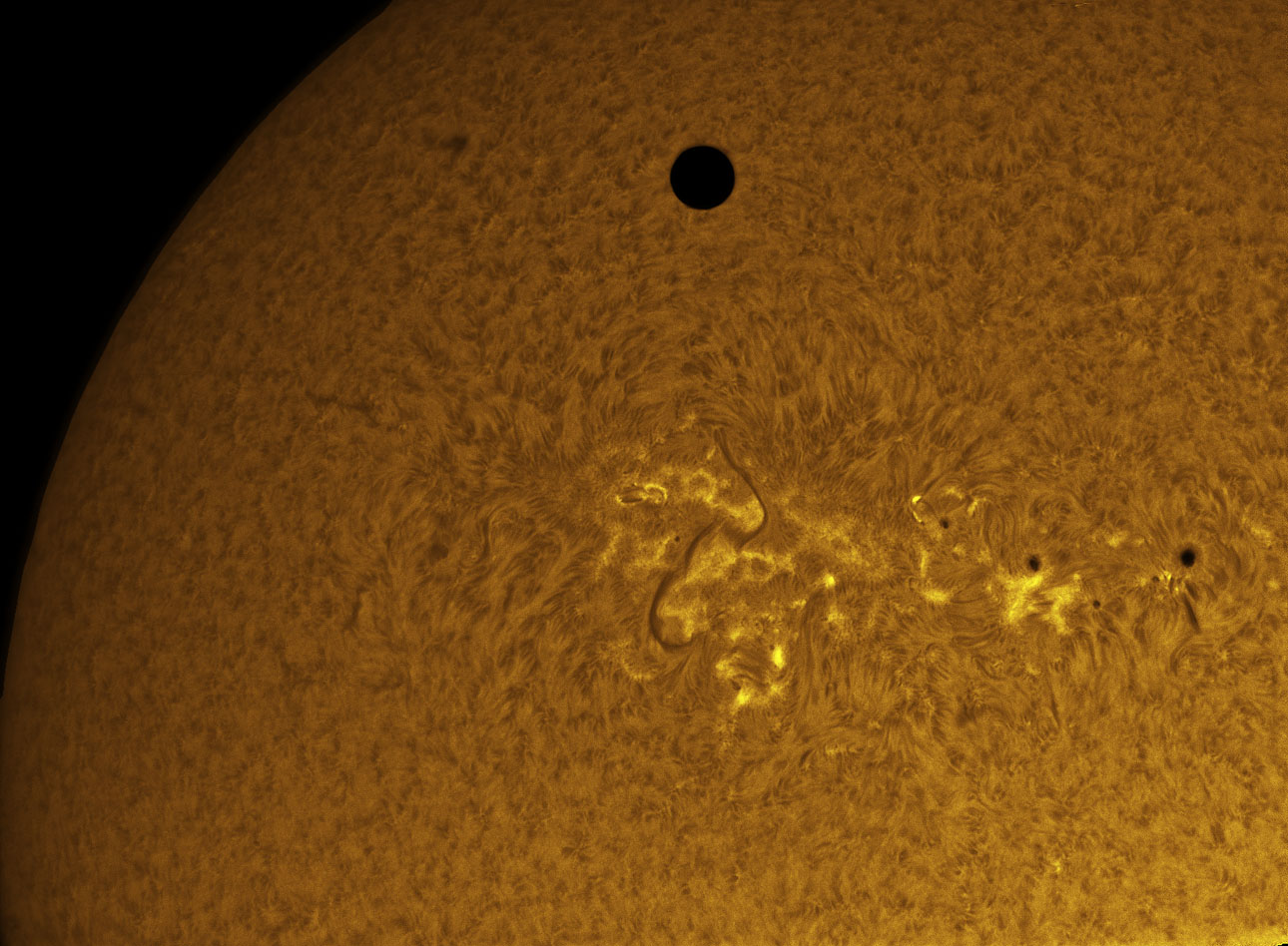 the planet as it moves over the sun.