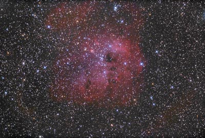 pink emission nebula contains several dark areas corresponding
