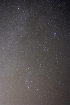is the constellation of Orion, brimming with red hydrogen nebulosity.